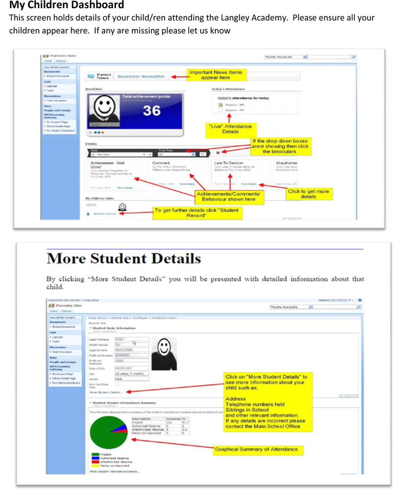 At The Langley Academy we are committed to ensuring that you have access to up to date and relevant information about your son/daughter. As part of this commitment the Sims Learning Gateway (SLG) allows parent/carers live access to their child’s details and performance at the Academy. At any time during the day or night and from any location where you have Internet access you will be able to view information about your child’s attendance, timetable, achievement, behaviour and assessment. You should already have received your user name and password and we have created a user friendly guide to help you understand how to access the SLG as well as understand the information available for you to view.